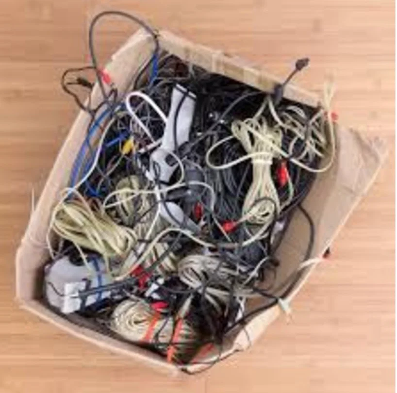 As a professional organizer, I am often asked what to do with a box/drawer/bag full of random cables and cords. I think we all have them, don't we? Cords we know go to something we have...or used to have...maybe?